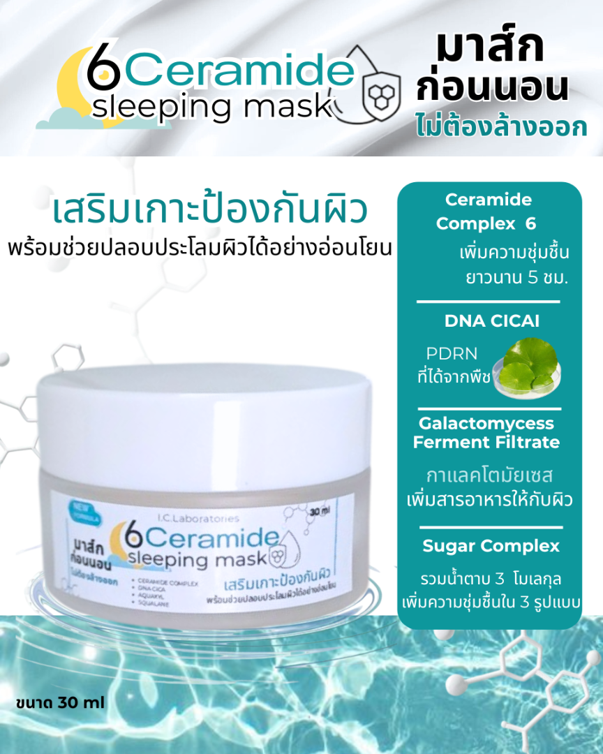 บริษัท ไอ.ซี.แล็บบอราทอรี่ส์ โรงงานผลิตครีม/เครื่องสำอาง ครีมบำรุงผิวหน้า สลีปปิ้งมาสก์เซราไมด์ (Ceramide Sleeping Mask) โรงงานผลิตครีม ครีมบำรุงผิวหน้า ของเรายึดมั่นในมาตรฐาน GMP เป็นหัวใจสำคัญในทุกขั้นตอน ตั้งแต่การคัดสรรวัตถุดิบคุณภาพสูง การควบคุมกระบวนการผลิต ไปจนถึงการบรรจุสินค้า เราให้ความสำคัญกับความสะอาดและความปลอดภัยสูงสุด เพื่อให้คุณมั่นใจได้ว่าผลิตภัณฑ์ทุกชิ้นที่ออกจาก โรงงานผลิตครีม/เครื่องสำอาง ของเรามีคุณภาพ ได้มาตรฐาน และปลอดภัยต่อผู้บริโภคอย่างแท้จริง เราพร้อม รับสร้างแบรนด์ครีมบำรุงผิวหน้า ให้กับ CEO และเจ้าของแบรนด์ทุกท่าน ด้วยบริการที่รวดเร็วและครบวงจร ตั้งแต่การให้คำปรึกษาเรื่องสูตรผลิตภัณฑ์ การออกแบบบรรจุภัณฑ์ ไปจนถึงการขึ้นทะเบียน อย. เพื่อให้การ รับสร้างแบรนด์ ของคุณเป็นเรื่องง่ายและไร้กังวล มาร่วมเริ่มต้นและเติบโตไปด้วยกันอย่างยั่งยืนกับ ไอ.ซี. แล็บฯ โรงงานผลิตครีม/เครื่องสำอาง ที่เข้าใจและพร้อม รับสร้างแบรนด์ครีมบำรุงผิวหน้า ตอบโจทย์ทุกความต้องการของมืออาชีพอย่างคุณ